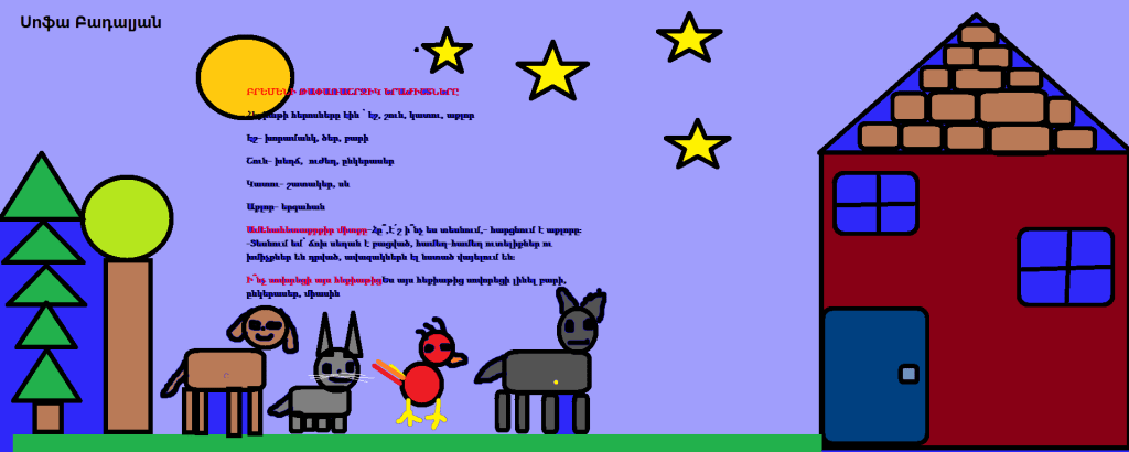 - Կապույտով ներկի՛ր ո՞վ հարցին պատասխանող բառերը: