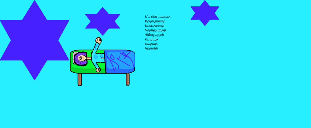 10:10-10:55-․ Ղազարոս Աղայանի  «Երկիր, որտեղ բոլոր բառերը սկսվում են Չ տառով » ստեղծագործության քննարկում, paint ծրագրով նկարում ենք հեքիաթը և մուտքագրում չ-ով սկսվող բառեր