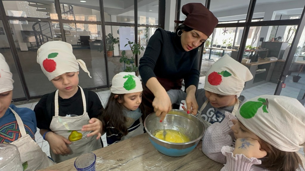 Հունվարի 8-ին Հյուսիսային դպրոցի 2-րդ և 3-րդ դասարանների ջոկատները միասին այցելեցին Սեբաստացի կենտրոն` խոհանոց-լաբարատորիա:Նախապես ճամբարականների հետ որոշել էինք, թե ինչ ենք պատրաստելու:Ճամբարականները մեծ սիրով և հավեսով անցան գործի, ծանոթացան բաղադրիչներին և յուրաքանչյուրը իր սիրուն մասնակցությունը ունեցավ խմորի պատրաստման ընթացքում:Այնուհետև յուրաքանչյուր ճամբարական վերցրեց իր բաժին խմորը և սկսեց աշխատել հատուկ ամանորյա ֆորմաներով:Ընթացքը ինչպես միշտ շատ տպավորիչ էր:Ճամբարականները համբերատար սպասեցին մինչև թխվածքաբլիթները պատրաստ լինեն և համեղ-համեղ համտեսելով քայլեցին դեպի Հյուսիսային դպրոց: