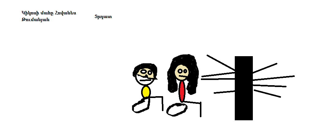 «Թումանյանական օրեր» նախագծի շրջանակում Հյուսիսային դպրոցի 2․1 դասարանի սովորողները paint ծրագրով նկարել են Հ․Թումանյանի « Կիկոսի մահը» հեքիաթը։Կեցցե՜ք։