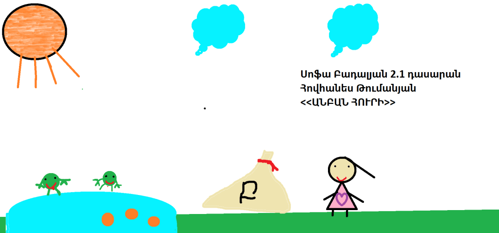 «Թումանյանական օրեր» նախագծի շրջանակում Հյուսիսային դպրոցի 2․1 դասարանի սովորողները paint ծրագրով նկարել են Հ․Թումանյանի « Անբան Հուռին » հեքիաթը։Կեցցե՜ք